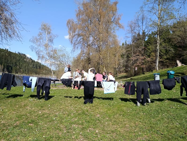 Für 3 davon war es die erste Erfahrung im Süßwasser, da das frische Einstern Taucher aus dem diesjährigen Tauchkurs waren. Unter Anleitung von Flo sind alle wieder gesund und glücklich aus dem Wasser gekommen und das hat trotz der großen Anzahl an Badegästen gut funktioniert.