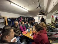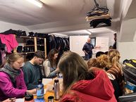 Our small but mighty 2025 training team gathered by the UniDive Geräteraum for an intense theory session to sharpen our minds before the AK Gruppenführung practical weekend.