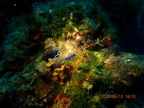 Die Kamera hat einen Großen roten Drachenkopf, Flabellina affinis (lilane Schnecke mit orangenen Zotten), Cratena peregrina (weißliche Schnecke mit lila Zotten), Felimida krohni (die lilane Schnecke mit den Streifen, sieht ähnlich aus wie die Pyjamaschnecke). Außder wurde ein Seepferdchen von Anna gefunden. Im allgemeinen war dies schon das dritte Seepferdchen und teile der Taucher sind sehr traurig darüber keine gesehen zu haben. :(