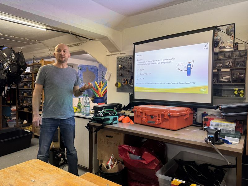 Am 12. April 2026 veranstalteten unsere geschätzten Ausbilder Martin und Maggus eine Prüfungsvorbereitung mit anschließender Fragerunde für die begeisterte Lerngruppe der fortgeschrittenen Sporttauchscheine (CMAS ** und ***).