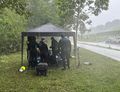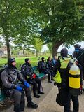 Dann kam das wichtigste des ganzen Tages- die Mittagspause. Noch bevor alle aus dem Wasser waren sind die ersten Päckchen Gummibärchen aus den Taschen geschossen. Achim hat einen Gasgrill mitgebracht und damit war die Runde perfekt. Die "Nachtschicht Gruppe" hat sich direkt nach dem Essen verabschiedet und hat sich auf in Richtung Heimat gemacht.