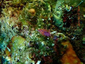 Die Kamera hat einen Großen roten Drachenkopf, Flabellina affinis (lilane Schnecke mit orangenen Zotten), Cratena peregrina (weißliche Schnecke mit lila Zotten), Felimida krohni (die lilane Schnecke mit den Streifen, sieht ähnlich aus wie die Pyjamaschnecke). Außder wurde ein Seepferdchen von Anna gefunden. Im allgemeinen war dies schon das dritte Seepferdchen und teile der Taucher sind sehr traurig darüber keine gesehen zu haben. :(
